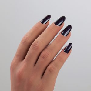 Το βάθος του μαύρου, η ζεστασιά του μελιτζανί και μια λαμπερή πινελιά shimmer. Φανταστείτε τα νύχια σας να λάμπουν κάτω από το φως, μαγνητίζοντας τα βλέμματα με την ένταση και την αίγλη τους. Θα σας χαρίσει εξαιρετική ισορροπία ανάμεσα στη θηλυκότητα και την τολμηρότητα.