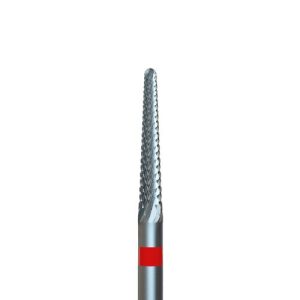 Διαμαντόφρεζα με μακρύ κωνικό σχήμα και στρογγυλεμένη μύτη. Μαλακής τραχύτητας με κόκκινο κρίκο. Το μέγεθός του επιτρέπει το κόψιμο και τη λείανση επωνυχίων, καθώς και του σκληρού δέρματος γύρω από το νύχι.