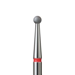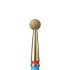 Διαμαντόφρεζα σε σχήμα μπίλιας με εχει χρυσή επίστρωση ΖRN (zirconium) που δεν θερμαίνεται με χρώματα κρίκων κόκκινο και μπλε (μεσαίας τραχύτητας) για τέλειο καθάρισμα ακόμα και σε πιο δύσκολα επωνύχια.