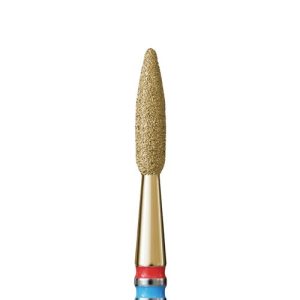 Διαμαντόφρεζα με μακρύ κωνικό σχήμα και στρογγυλεμένη μύτη. Μέτριας τραχύτητας με μπλε κρίκο. Το μέγεθός του επιτρέπει το κόψιμο και τη λείανση επωνυχίων, καθώς και του σκληρού δέρματος γύρω από το νύχι.