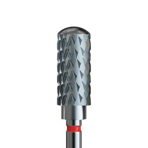 Φρέζα καρβιδίου σε σχήμα βαρελάκι. Μαλακής τραχύτητας, με κόκκινο κρίκο. Η στρογγυλεμένη του κεφαλή δεν τραυματίζει το δέρμα. Κατάλληλο για αφαίρεση ημιμόνιμου, καθώς και για τη διαμόρφωση της καμπύλης κάτω απο το νύχι.