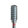Φρέζα καρβιδίου σε μακρύ και λεπτό κωνικό σχήμα. Μαλακής τραχύτητας με κόκκινο κρίκο. Το σχήμα της σας επιτρέπει να ενσωματώστε σκληρά υλικά όπως gel και acrygel κοντά στα επωνύχια, και να τελειοποιήσετε την καμπύλη κάτω από το νύχι.