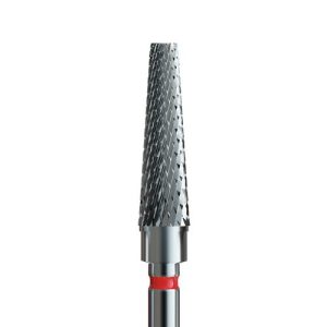 Φρέζα καρβιδίου κόκκινη μαλακή λεπτή κώνος. Το μέγεθος και το μήκος της φρέζες μας βοηθάει στην αφαίρεση του ημιμόνιμου, αφαίρεση κάτω από το ελεύθερο άκρο για μία σωστή καμπύλη C αλλά και για λείανση υλικού κοντά στα επωνυχια. Χάρη στο υλικό από το οποίο είναι κατασκευασμένη η φρέζα είναι εξαιρετικά ανθεκτική χωρίς να έχεις την αίσθηση καψίματος.
