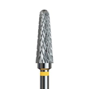 Φρέζα καρβιδίου σε λεπτό κωνικό σχήμα. Μαλακής τραχύτητας με κίτρινο κρίκο. Κατάλληλη για αφαίρεση ημιμόνιμου. Το λεπτό του σχήμα επιτρέπει την ενσωμάτωση υλικού κοντά στα επωνύχια, καθώς και την διαμόρφωση κάτω από το νύχι. Κατάλληλη και για αρχάριους.