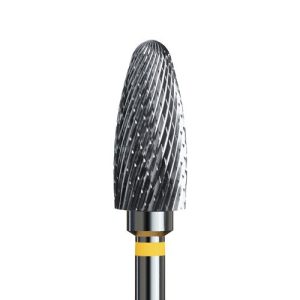 Φρέζα καρβιδίου σε μακρύ και λεπτό κωνικό σχήμα με ίσια κεφαλή. Μαλακής τραχύτητας με κίτρινο κρίκο. Το σχήμα της σας επιτρέπει να ενσωματώστε σκληρά υλικά όπως gel και acrygel κοντά στα επωνύχια, και να τελειοποιήσετε την καμπύλη κάτω από το νύχι.