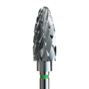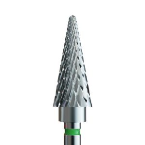 Φρέζα καρβιδίου πράσινη κωνική (σκληρής τραχύτητας). Το μέγεθος αυτής της φρέζας είναι ιδανικό για κατέβασμα και διαμόρφωση σκληρών υλικών όπως acrygel , ακρυλικού. Το σχήμα της βοηθάει στην εργασία κοντά στην περιοχή των επωνυχιων και κάτω από το ελεύθερο άκρο. Ιδανική φρέζα για διαμόρφωσή καμπύλης C .