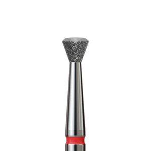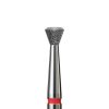 Διαμαντόφρεζα πλακέ, σε σχήμα αντεστραμμένου κώνου με ασφαλή στρογγυλεμένη κορυφή. Το χρώμα κρίκου είναι κόκκινο (μαλακό). Η συγκεκριμένη φρέζα, χάρη στο σχήμα της, είναι σχεδιασμένη για πιο ακριβή και αποτελεσματική εργασία στην περιοχή των επωνυχίων. Είναι μια τέλεια εναλλακτική λύση για το μανικιούρ, λόγω του ανατομικού της σχήματος.