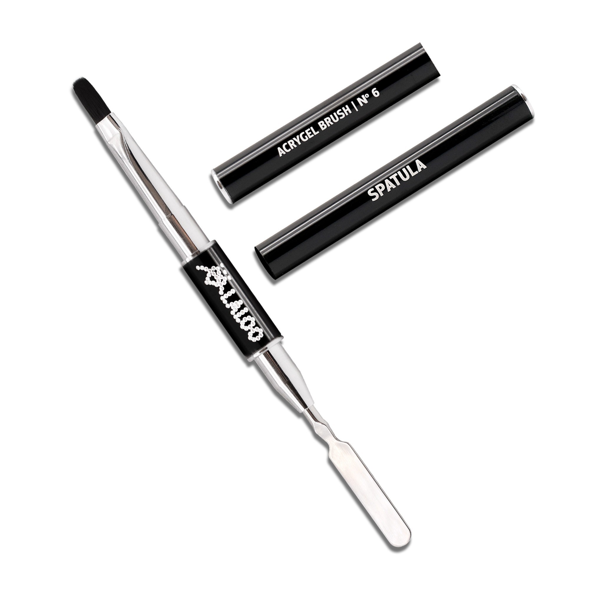 Ενσωματωμένη υπάρχει και η σπάτουλα, διευκολύνοντας την τοποθέτηση της σωστής ποσότητας Acrygel, πάνω στο νύχι.
