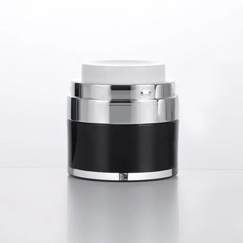 Airless dispenser, ready to fill with your favorite gel. It has a tubeless pump for use until the last drop. The tube‑free pump lets you use the contents right down to the last drop, while the vacuum system keeps air out and your product protected. Enjoy every drop with zero waste. The pump delivers a smooth, consistent dose—ideal even for thick textures. Cap and pump lock tightly to prevent leaks and mess. A double‑walled, black design shields the contents from light. Suitable for gels, creams and lotions. It is reusable and you will find it available in 30ml capacity.