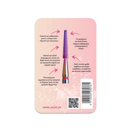 - Αφαίρεση ημιμόνιμου: Αν χρειάζεσαι ακριβή και λεπτομερή αφαίρεση αυτό το φρεζάκι είναι ιδανικό. Αφαιρεί μικρά υπολείμματα περιμετρικά από τη πλάκα του νυχιού κοντά στο δέρμα χωρίς να τραυματίζει.