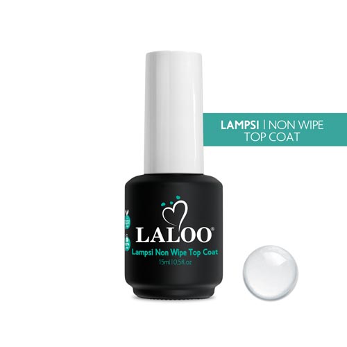 Ένα λεπτόρρευστο Non Wipe Top Coat προσφέρεται στην γκάμα της Laloo Cosmetics, για να χαρίσει στο μανικιούρ σας μια μοναδική LAMPSI προστατεύοντας ταυτόχρονα το χρώμα μας, καθώς περιέχει φίλτρα UV! Μια καινοτόμος, ασυναγώνιστη φόρμουλα, που καθιστά αυτό το προϊόν απαραίτητο για το κλείσιμο του μανικιούρ σας, καθώς θα προσφέρει μια φωτεινή αντανάκλαση, δίνοντας του διάρκεια περισσότερη των 3 εβδομάδων!