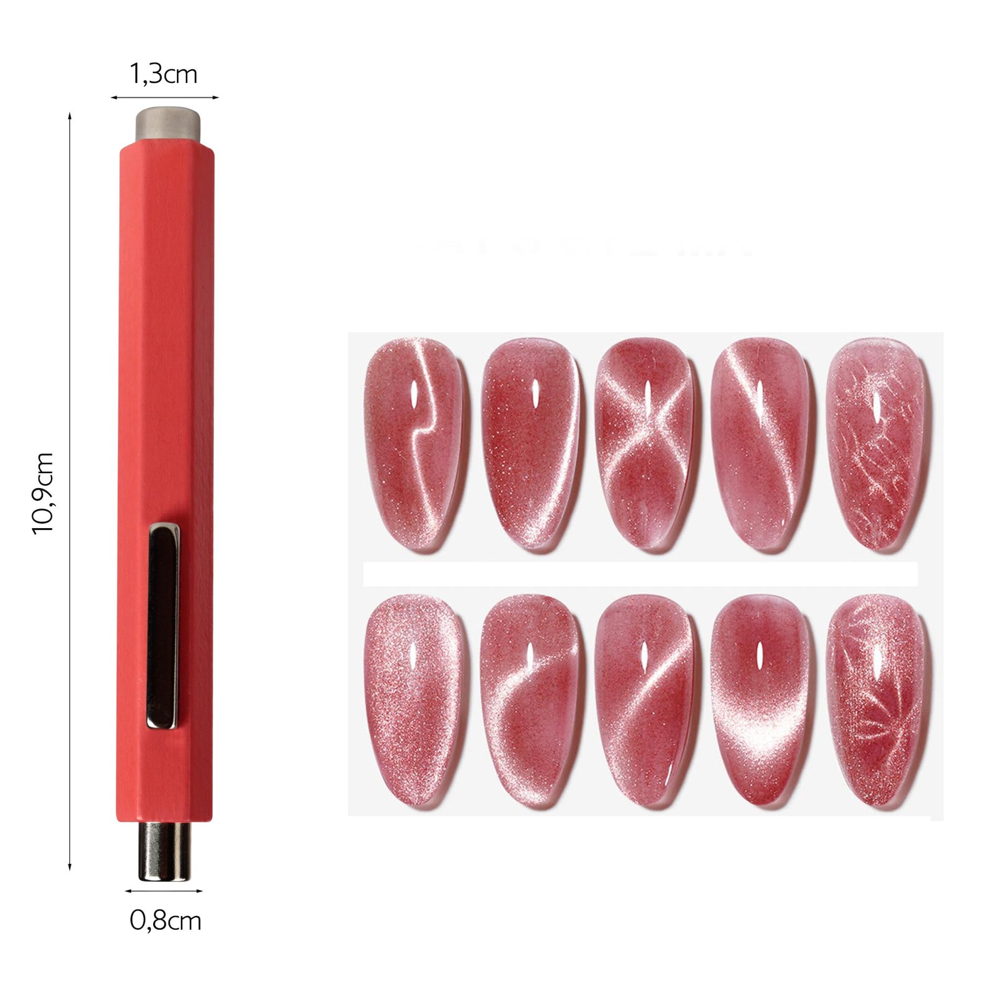 Upgrade your nail art with the 3-in-1 Pink Wooden Magnet Pen. This unique tool is ideal for creating different effects with cat eye gel polishes.